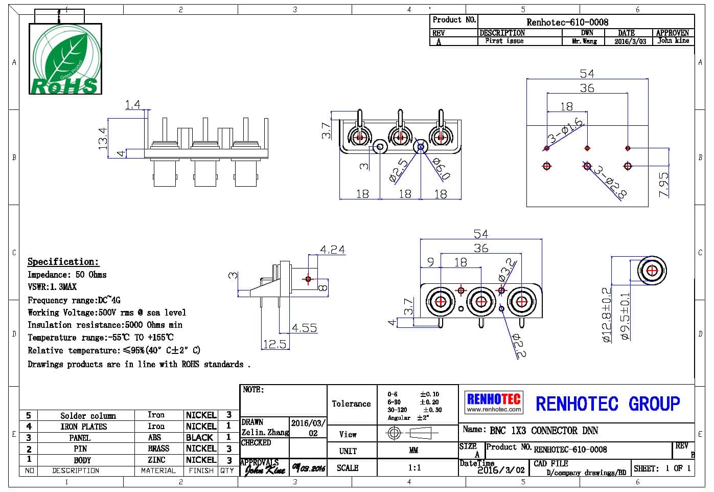 頻率范圍 | 50 ohm 為 0~4 GHz |