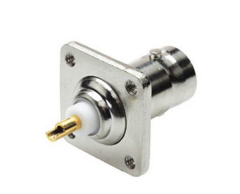 帶法蘭BNC連接器4孔母頭前鎖穿墻直式焊接式接線射頻同軸連接器